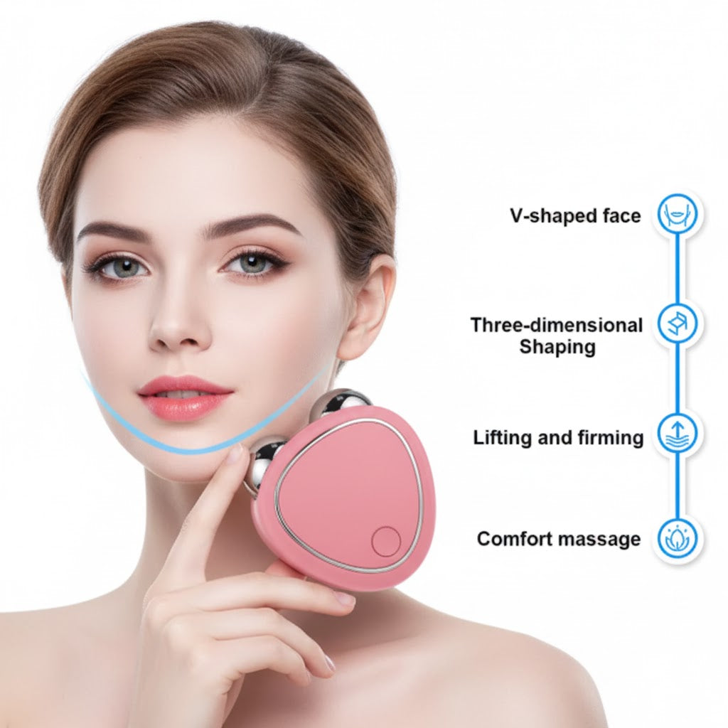 Designed for three-dimensional facial shaping, this device helps lift and firm the jawline and cheeks while delivering a soothing massage for a smoother, more contoured appearance.